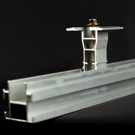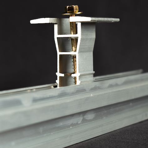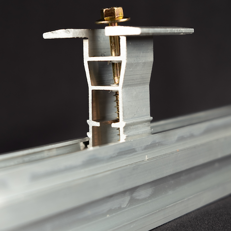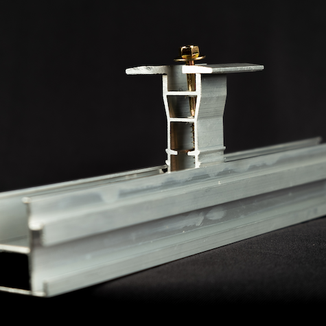 Each Mid-Clamp is shared by two adjacent Solar panels, and at the start and end (perimeter of an array), you will use the Mid Clamp in conjunction with the End Stopper or Anti-theft bracket. The Mid-Clamp has four distinct symmetrical clamping surfaces for attaching adjacent Solar panels onto the Rail.